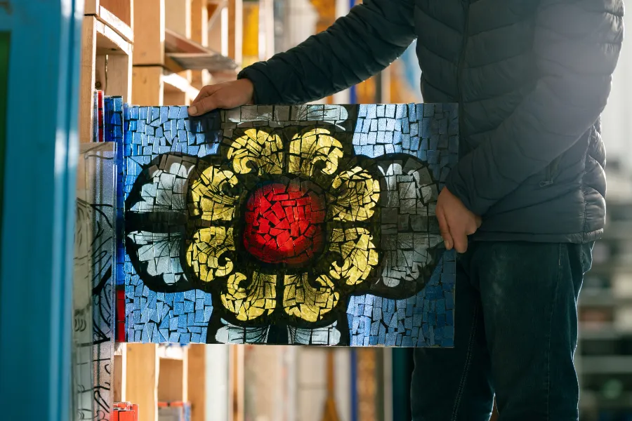Comercial: Vitrais e mosaicos artesanais valorizam ambientes corporativos com sofisticação, identidade e impacto visual.